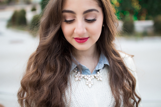 Layering is one of my all time favorites during the winter time because it keeps me super warm, and so many new looks can be created with the same sweaters! I'd have to say chambray shirts are definitely a staple of mine during this season because they look great under basically anything; cardigans, sweaters, you name it. Of course I had a jacket on hand (and a pair of gloves) because here in Illinois you just can't make do without it, it's a fact.